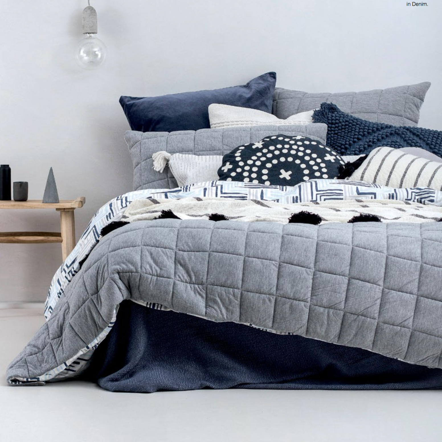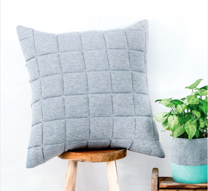 Super cosy and relaxed for the cooler months. Fletcher features a soft jersey fabric that has been quilted into a large check pattern on the front with a printed pattern on the cotton reverse featuring a maze of lines and shapes in a blend of blue tones.
