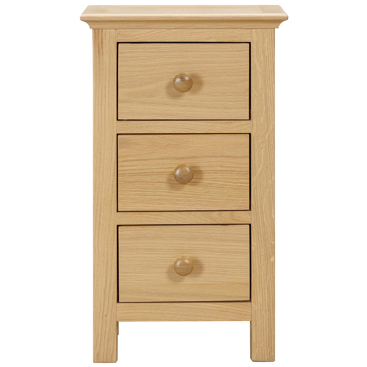 Treat yourself to this beautiful Arundel Oak 3 Drawer Bedside. Crafted with dovetail joints and an oak top, this elegant piece will add a timeless touch to your bedroom. Enjoy the quality and classic style for years to come.