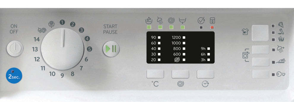 | Washing Programmes | Delicates / EcoCotton / Drain & spin / Wash & Dry 45' / Rinse & Spin / Cotton 40° / Super rapid / Rapid 30' / Chrono 30°/Quick wash 30° / Cold wash program / Wash&Dry Synthetics / Colours / Cotton 90° / Synthetics / Cotton / Availability of short program / Cotton 60° / Pre Wash / Daily 40° / Wool / Refresh / Wash&Dry Rapid / Start/Pause / Automatic programmes / Daily 30° / Spin |