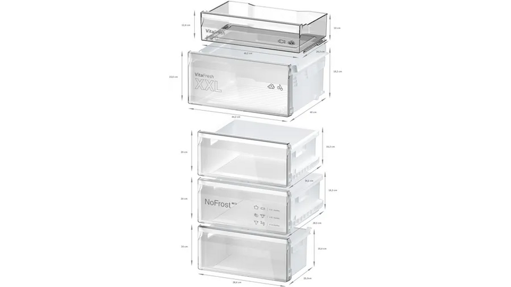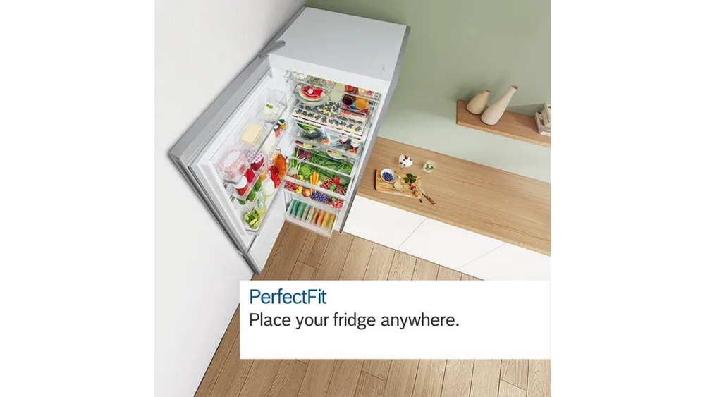 This freestanding fridge freezer from Bosch is the perfect addition to any kitchen. With an energy efficiency class of D and an annual energy consumption of 203 kWh, it is both environmentally friendly and cost-effective. The noise level of only 35dB ensures a quiet operation, making it suitable for any living space.