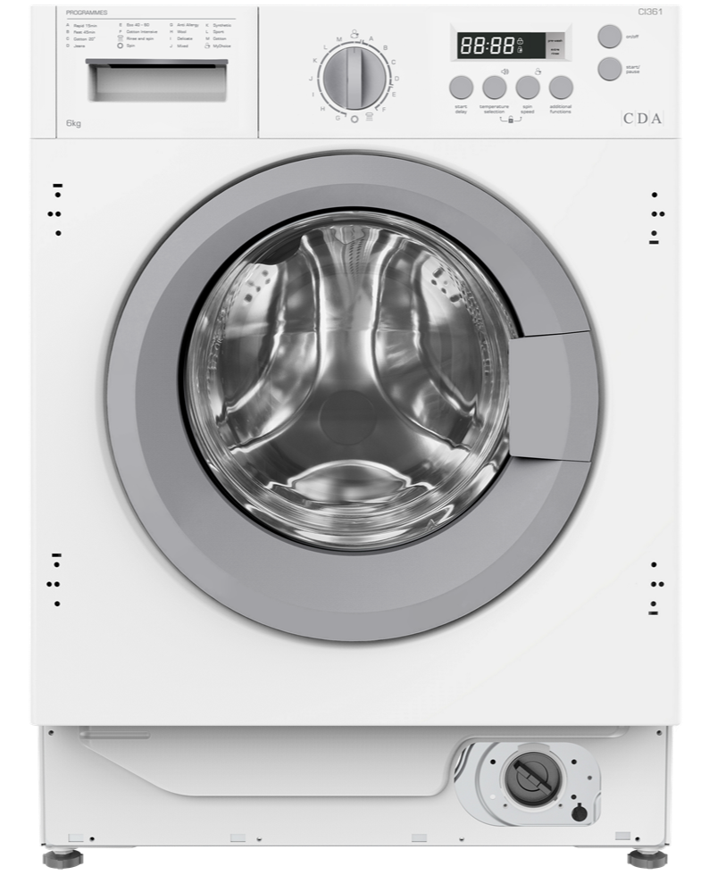 The CI361 is a 6kg 1200rpm spin speed integrated washing machine. This built in appliance is perfect for smaller households.The handy delay timer means that you can set your washing machine to end when it is convenient for you. It also comes with many handy programmes including a speedy 15 minute wash and delicate cycle for those more fragile items.