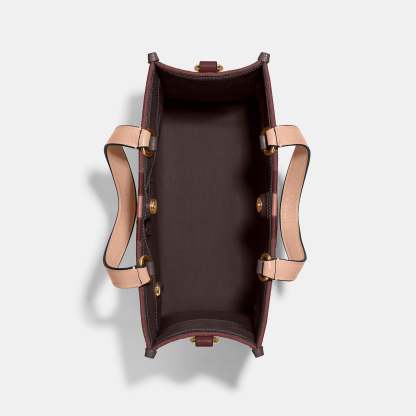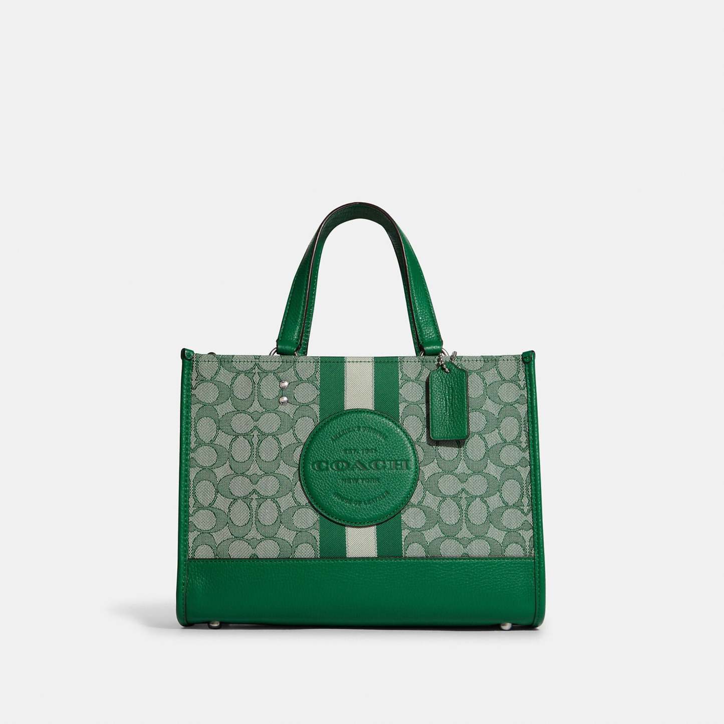 Signature jacquard and refined pebble leather Inside zip cell phone and multifunction pockets Snap closure fabric lining Handles with 5 1/4 drop Detachable strap with 20 drop for shoulder or crossbody wear 11 1/2 (L) x 8 3/4 (H) x 5 (W) This Coach piece is crafted of our Signature jacquard made from a blend of organic cotton and recycled polyester Style No. C8448 | Coach Outlet Dempsey Carryall In Signature Jacquard With Stripe And Coach Patch - Red