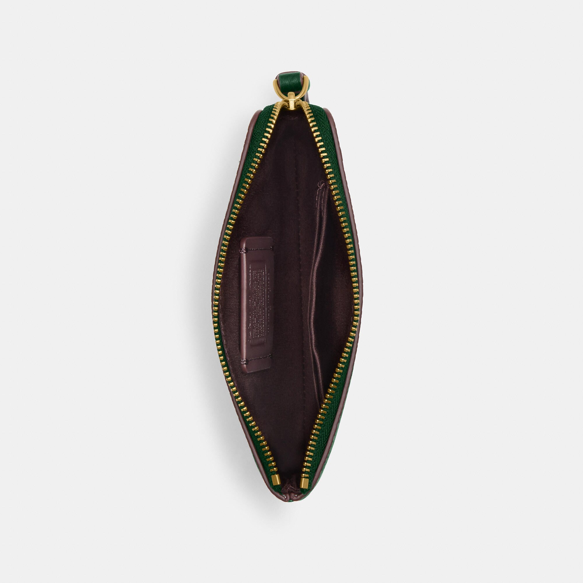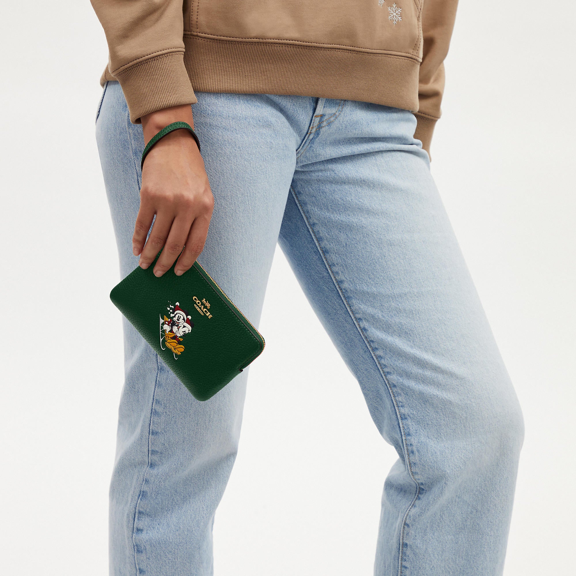 Refined pebble leather Two credit card slots Zip-top closure fabric lining Wrist strap attached 6 1/4 (L) x 4 (H) x 1/2 (W) Disney x Coach ©Disney Style No. CN025 | Coach Outlet Disney X Coach Corner Zip Wristlet With Sled Motif - Green