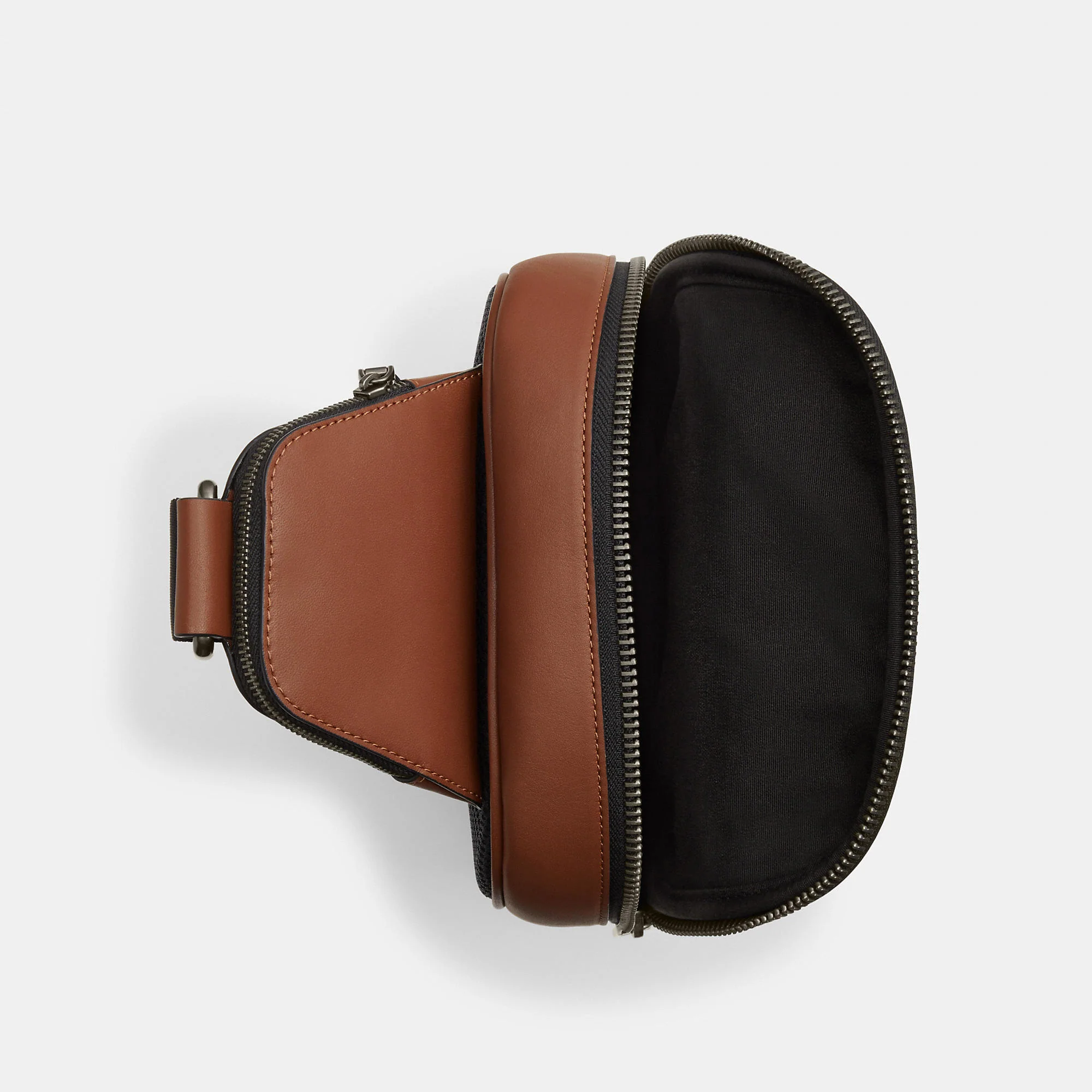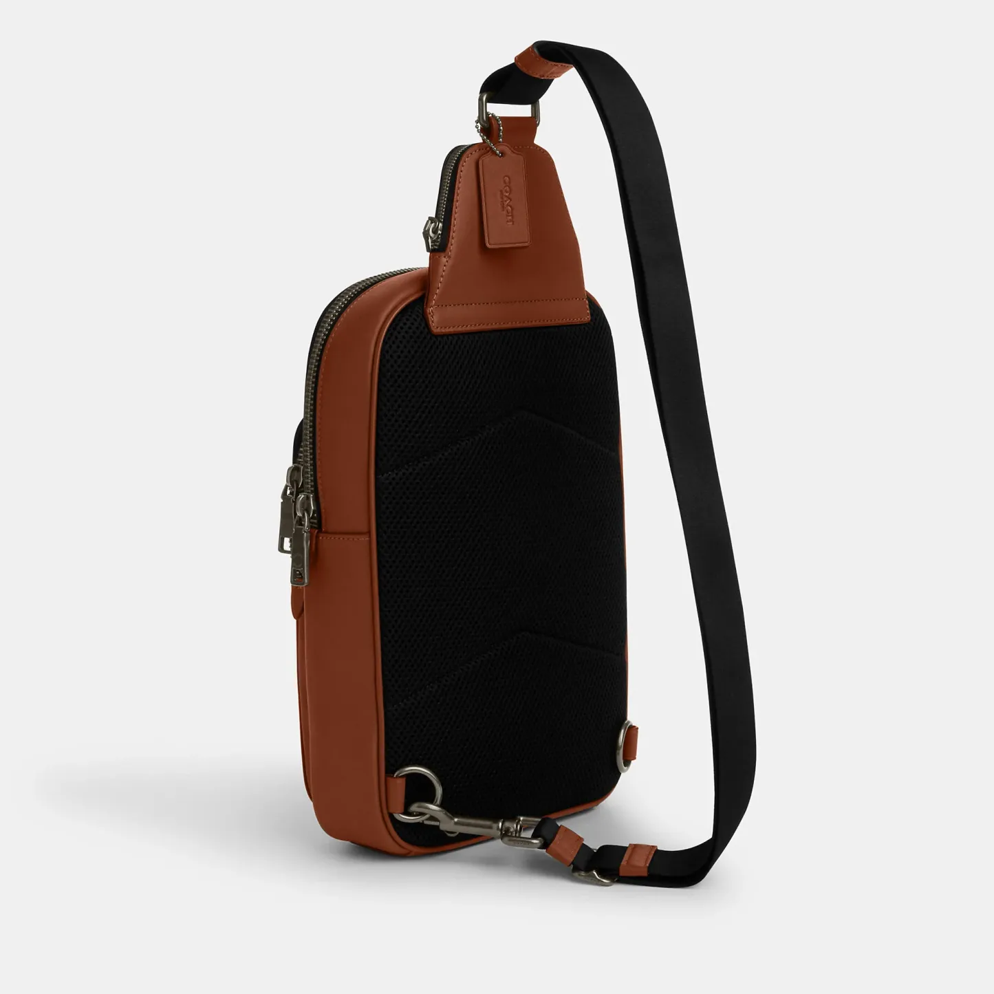 Refined pebble leather and smooth calf leather Inside zip and multifunction pockets Zip closure fabric lining Outside zip pocket Adjustable shoulder strap with 53 length for crossbody wear (clip left or right) 8 1/4 (L) x 12 1/2 (H) x 3 1/2 (W) Style No. CO911 | Coach Outlet Ethan Pack - Brown