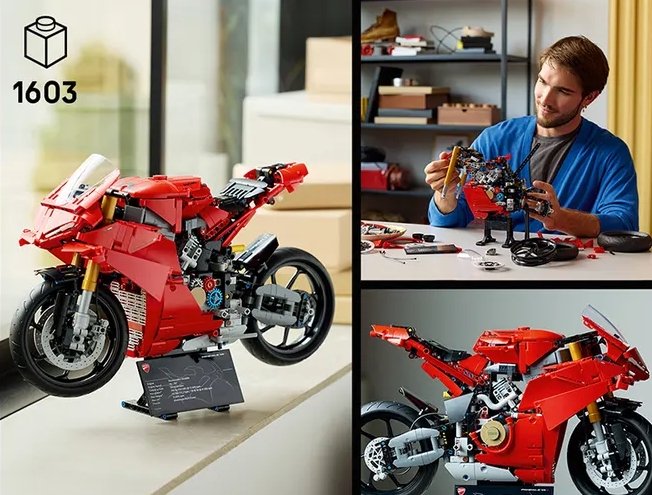 - LEGO® Technic Ducati Panigale V4 S Motorcycle – The model is packed with impressive details and authentic features like the front and rear suspension and steering