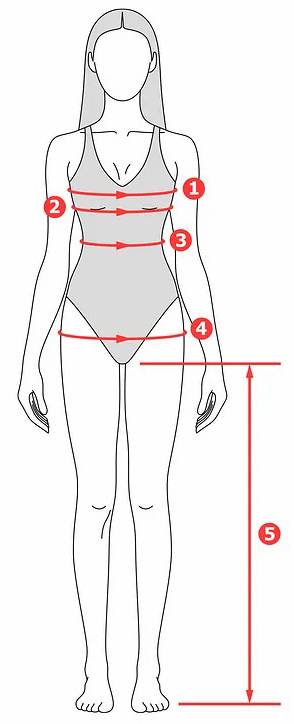①Bust With arms relaxed down at the sides, measure the fullest part of bust, keeping tape parallel |