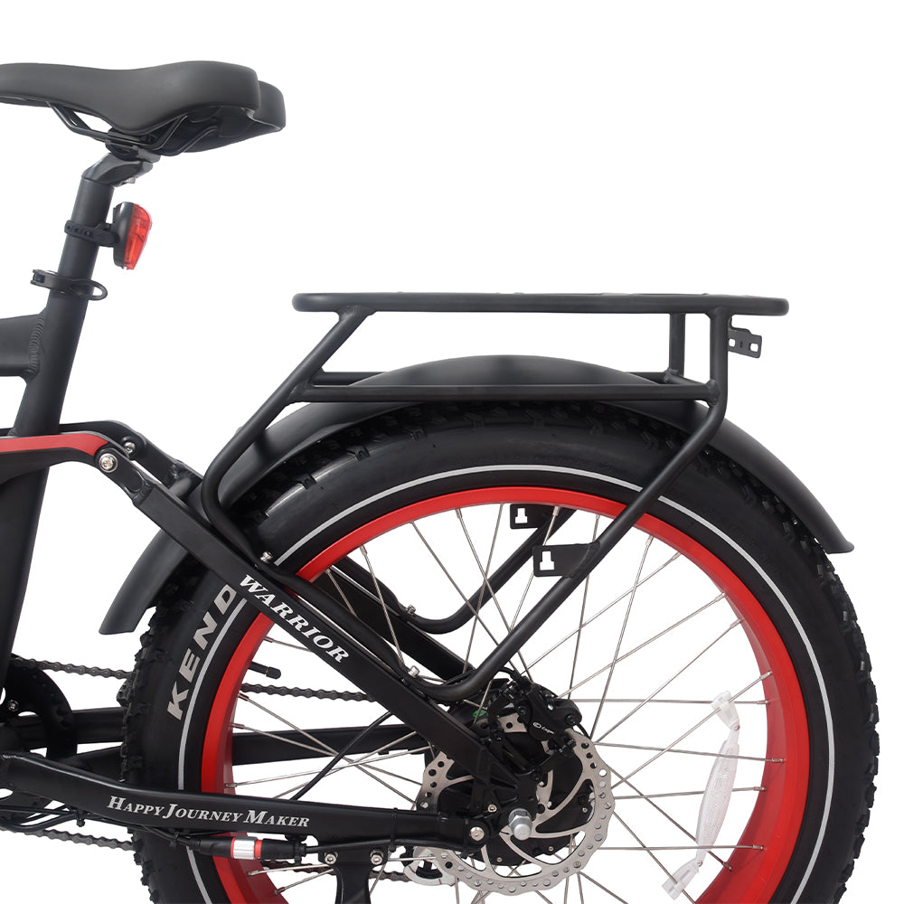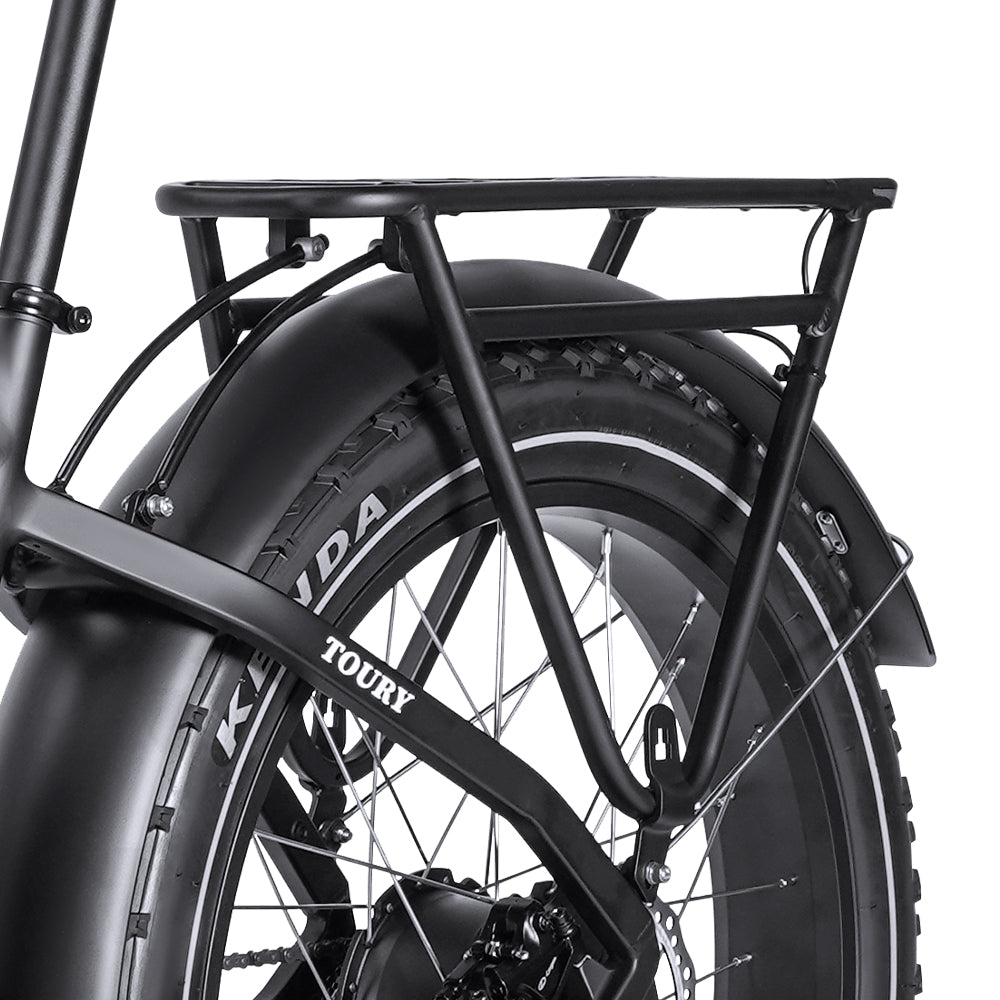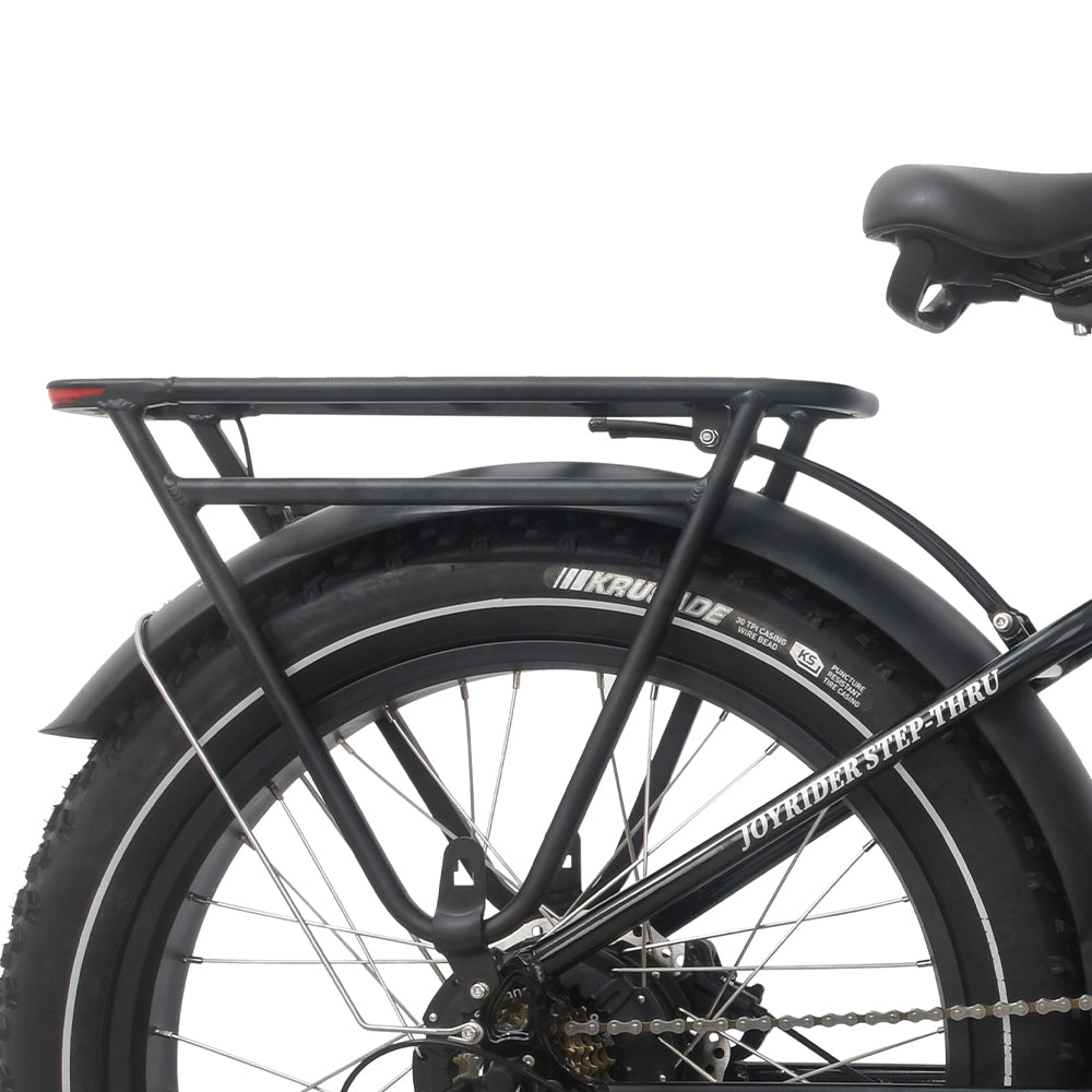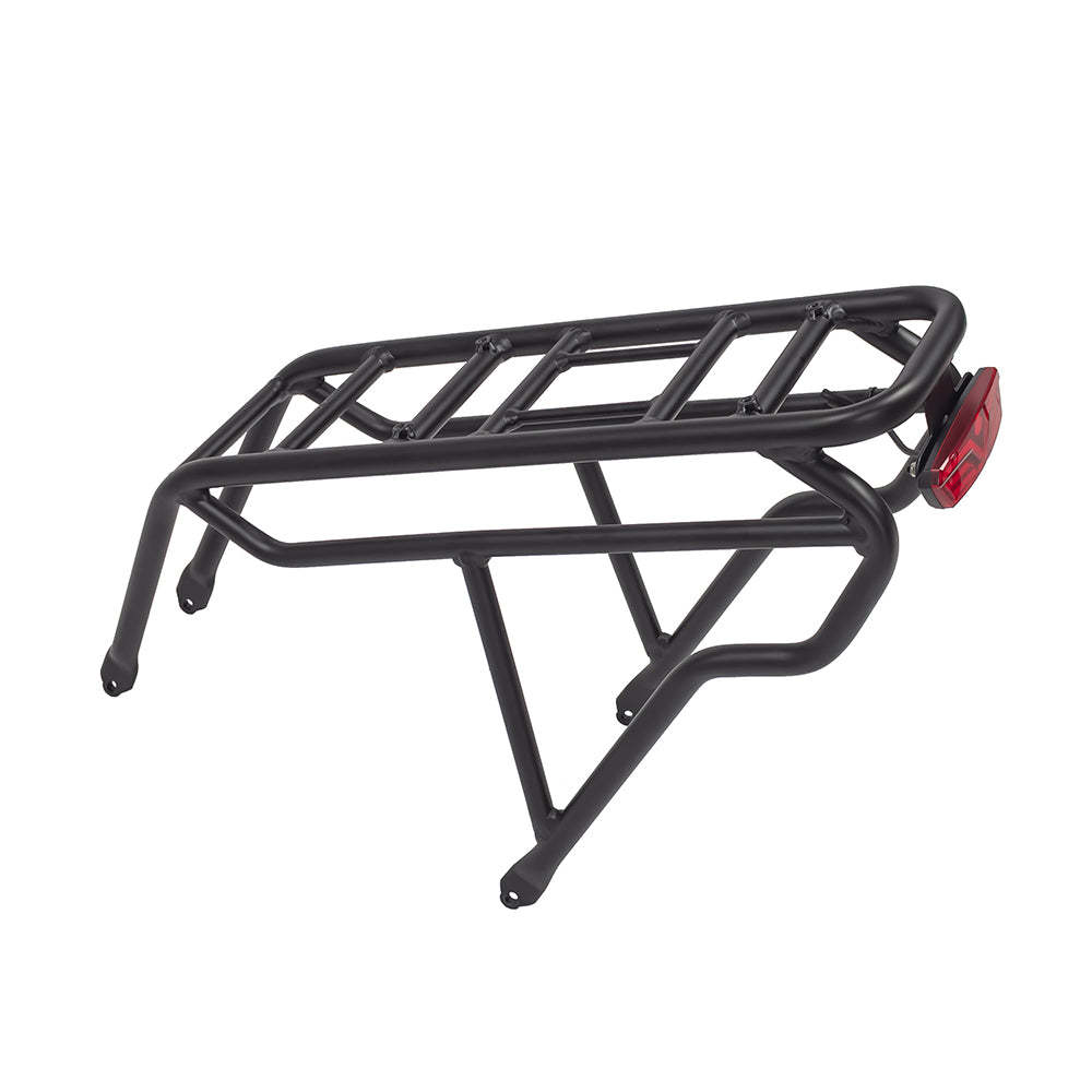 The rear rack can carry 25kg items while riding, and it is compatible with screwed basket.