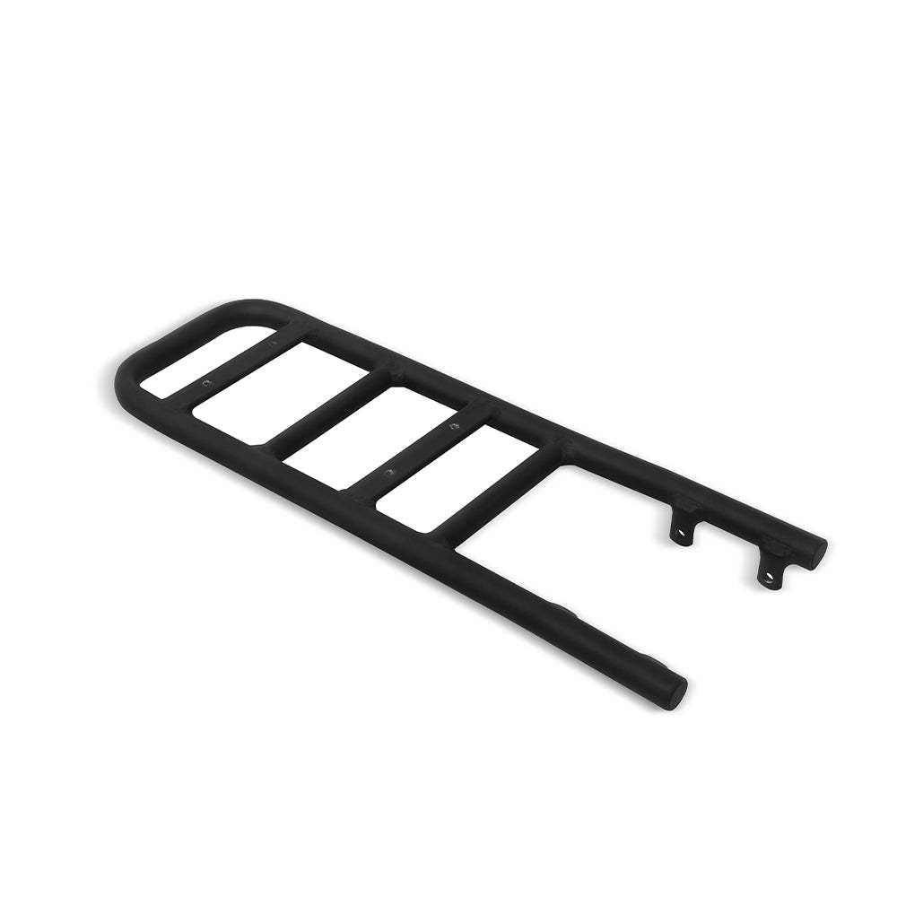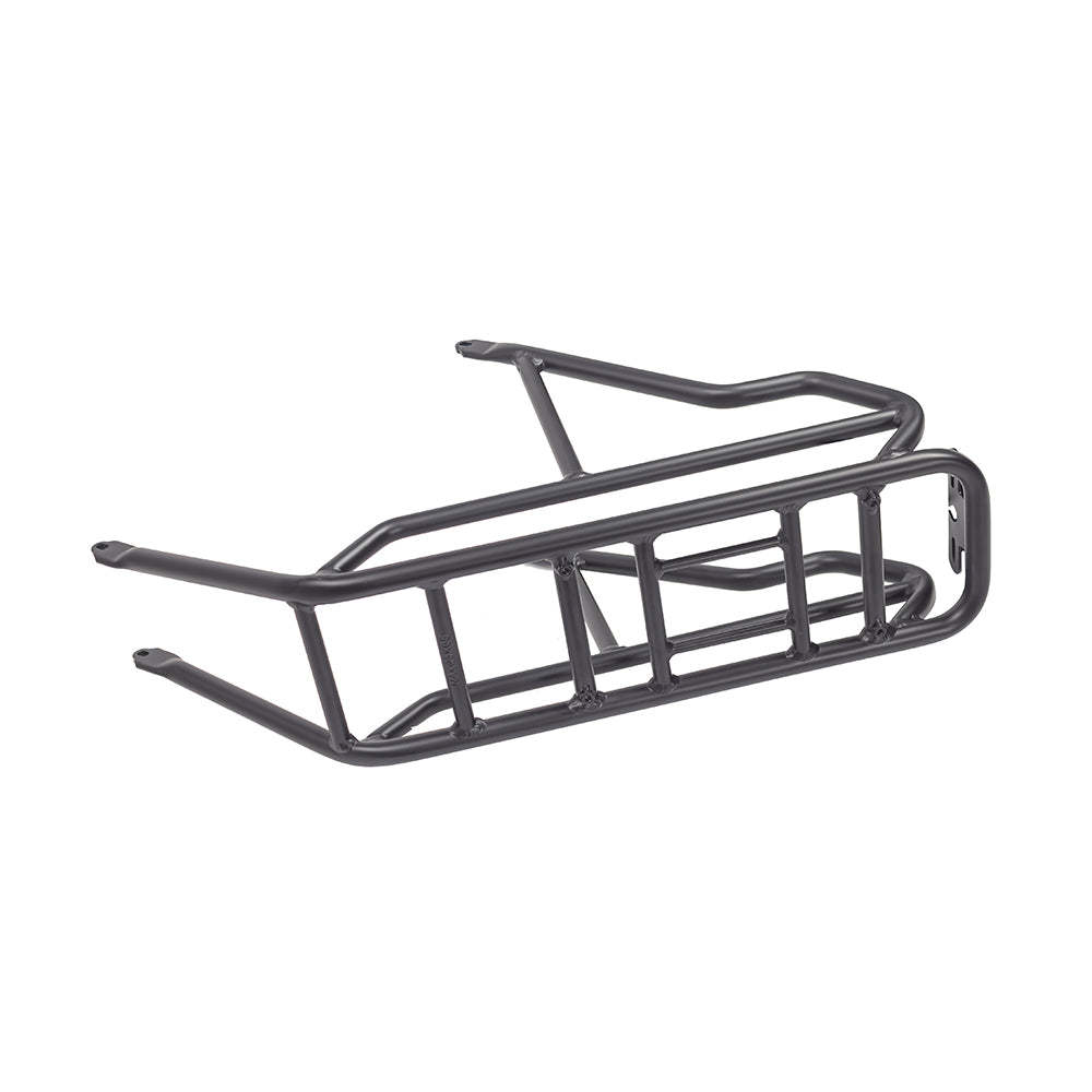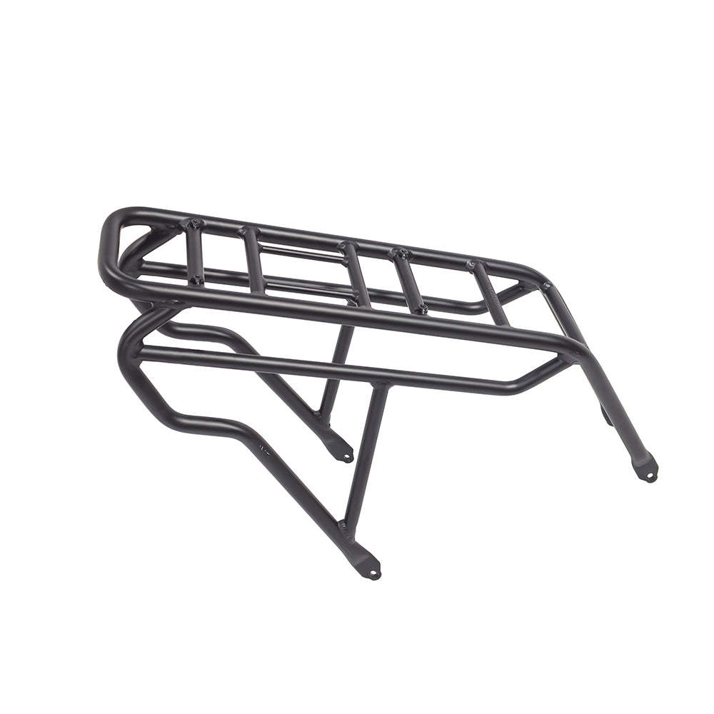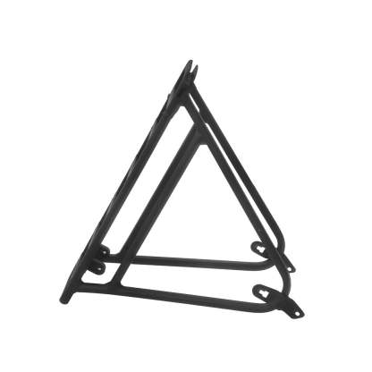 The rear rack can carry 25kg items while riding, and it is compatible with screwed basket.