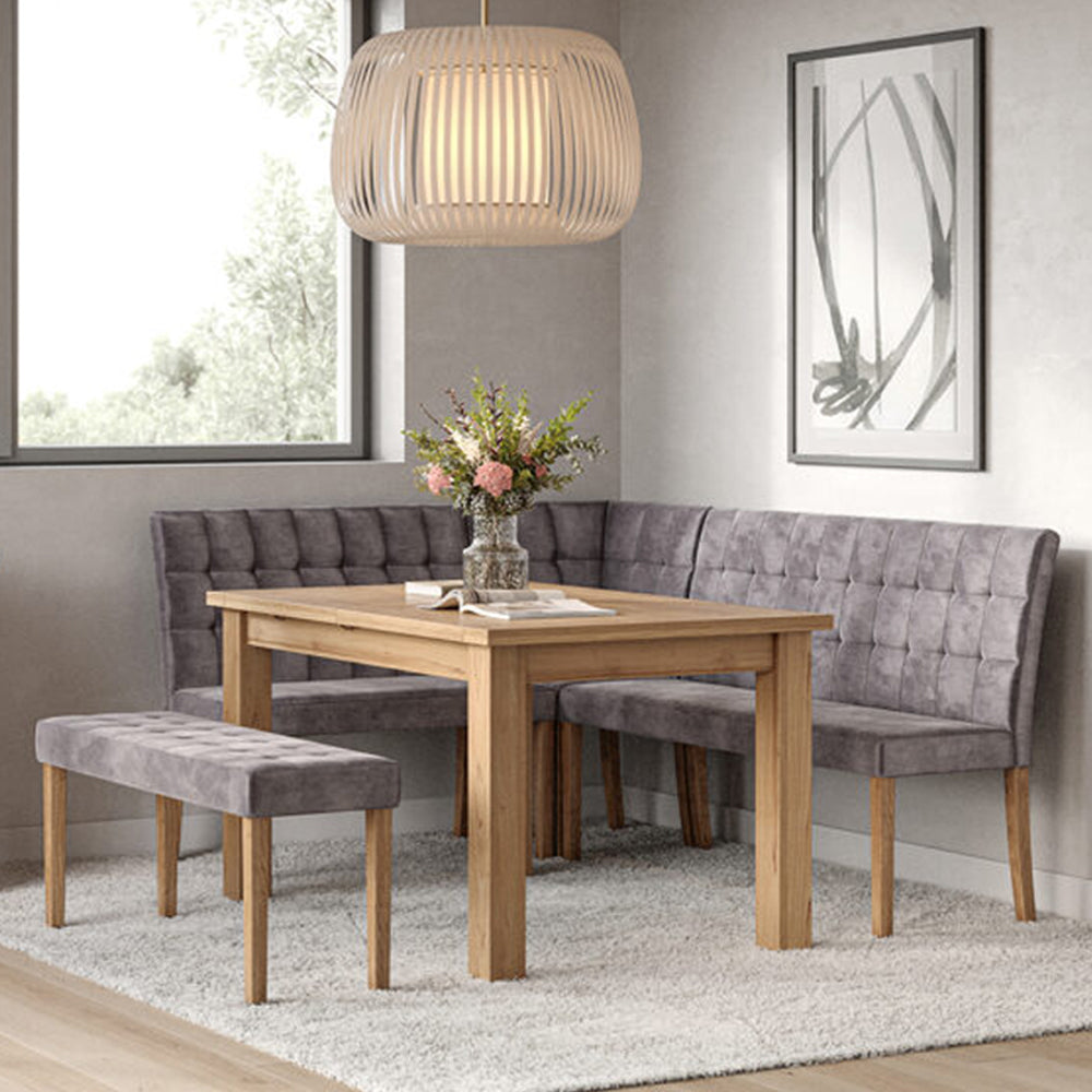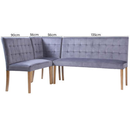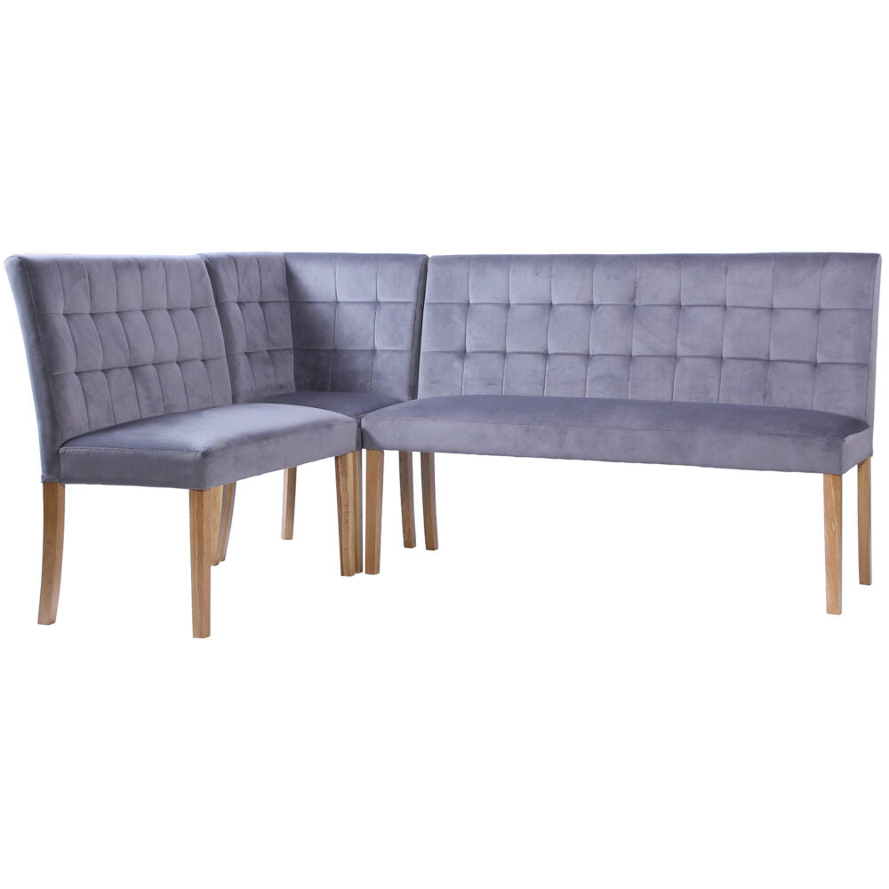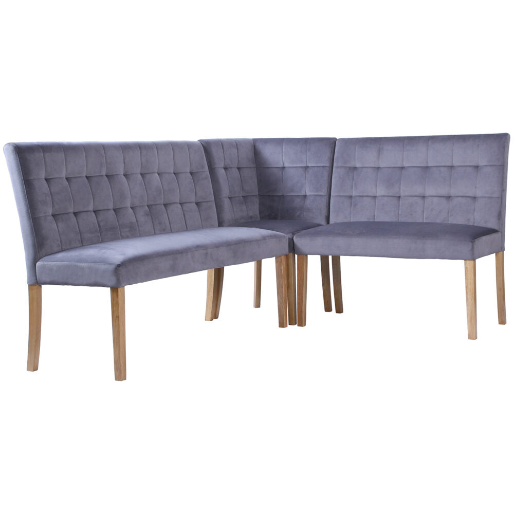 This padded bench set consists of 3 parts. Two benches and a corner seat section and is crafted from oak and covered in sumptuous velvet, providing a sturdy and super comfy addition to any home. Perfect for pairing with the Oxford Oak extending table.