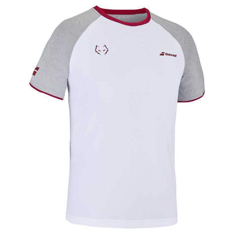 The discreet symbol of El Lobo and the Babolat signature appear symmetrically on the shirt.