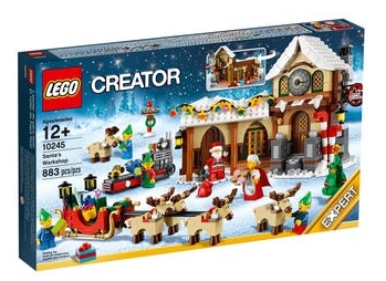 Enjoy the magic of Christmas with Santa's Workshop, a festive addition to the LEGO® Winter Village Series! Gather your family around the Christmas tree to build this enchanting winter wonderland. Help the elves make the toys, feed the reindeer and help Santa load up his magical sleigh. Santa's wife has baked cookies and the clock tower shows it's nearly time for Santa to deliver the presents—all at the most wonderful time of the year! Includes 6 minifigures: Santa with red gift sack, Mrs. Clauswith cookie tray and 4 elves with pointy ears and hats.
