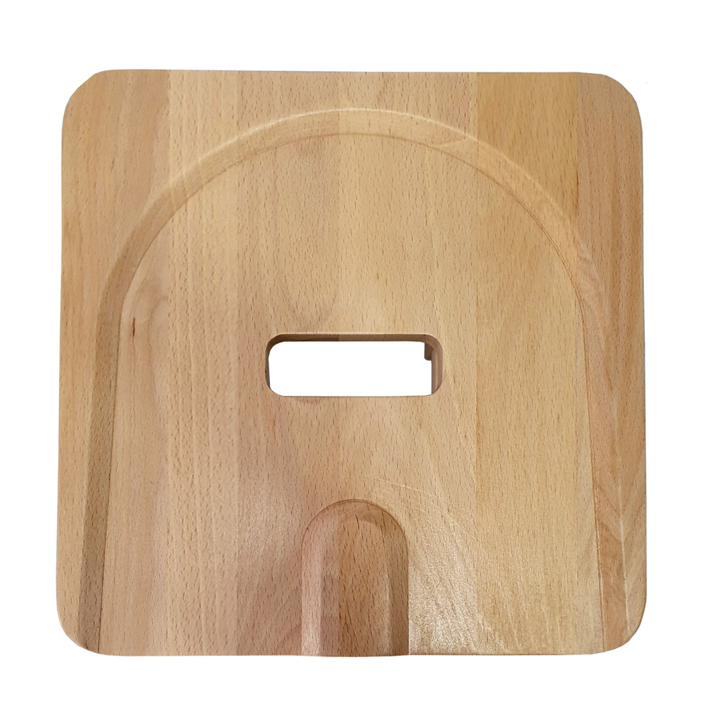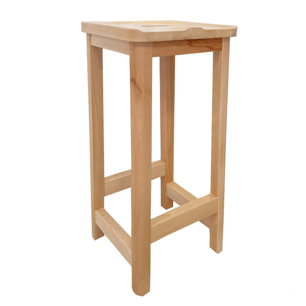 The School Stool is a solid, traditional styled, wooden stool with a contoured top with a hand hole for transportation.