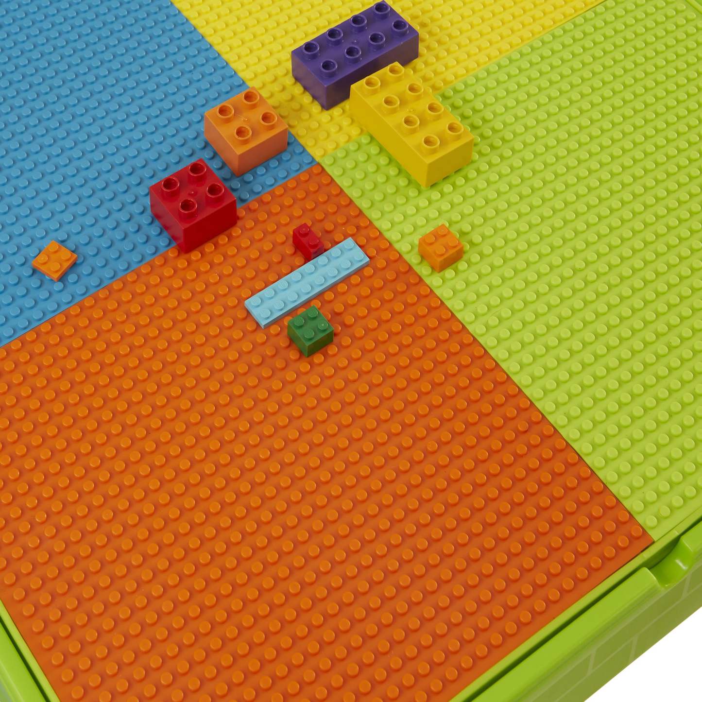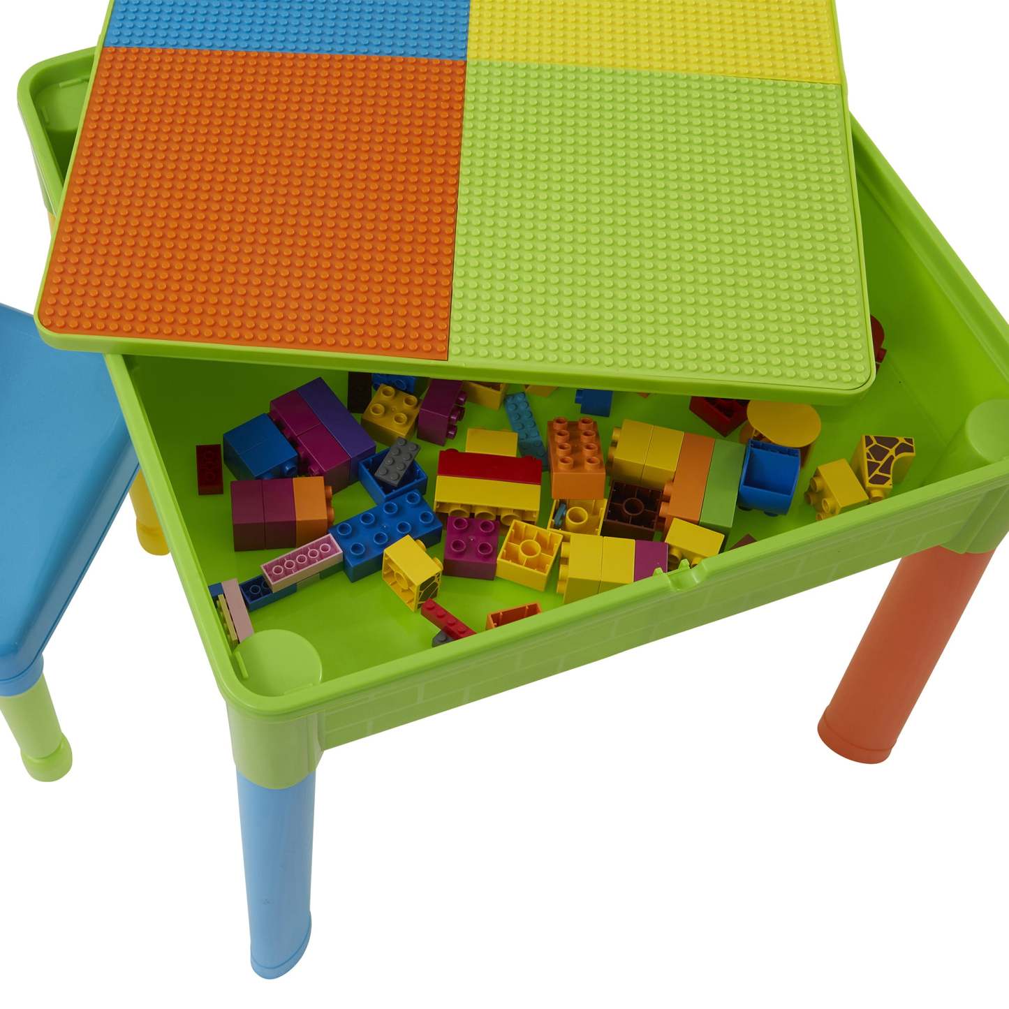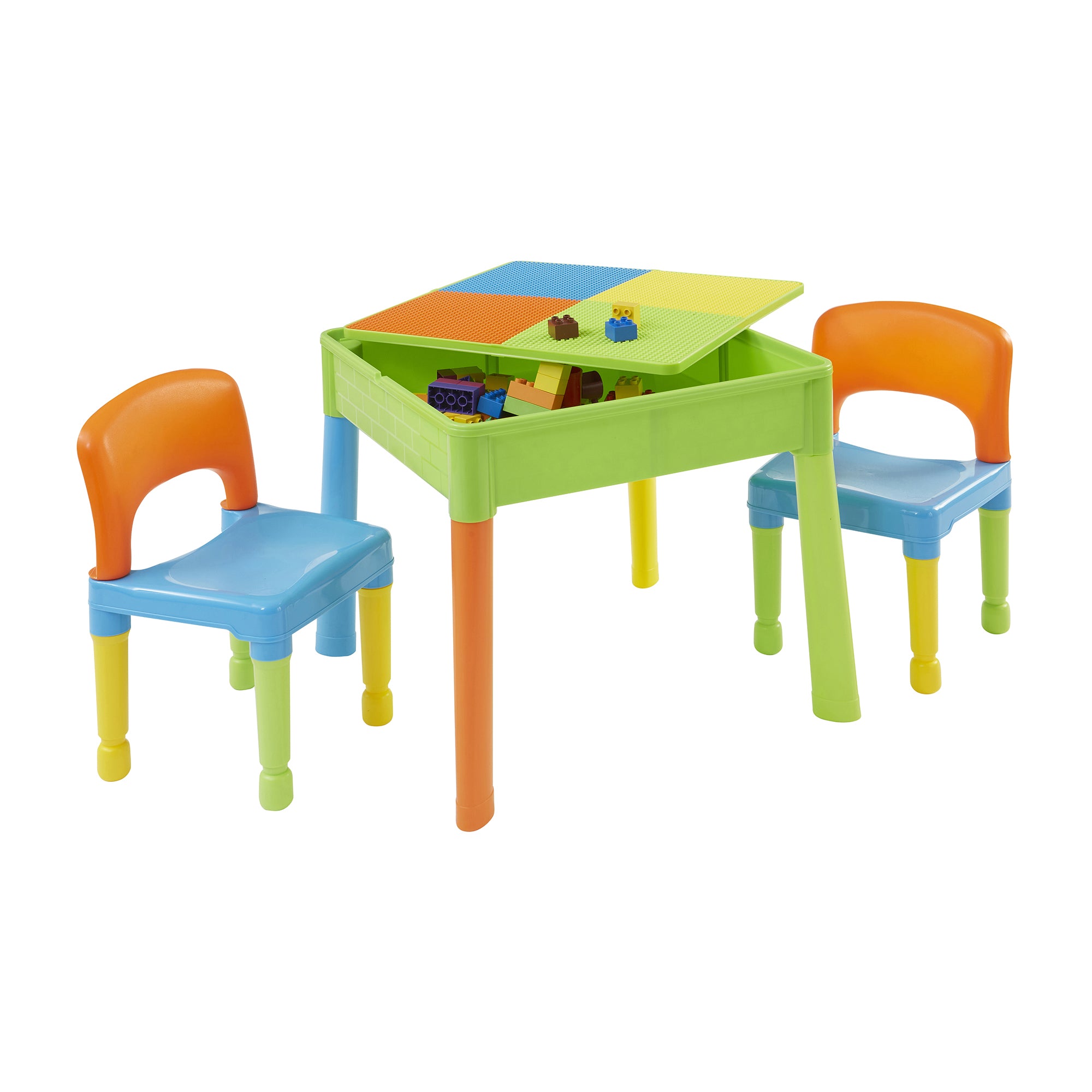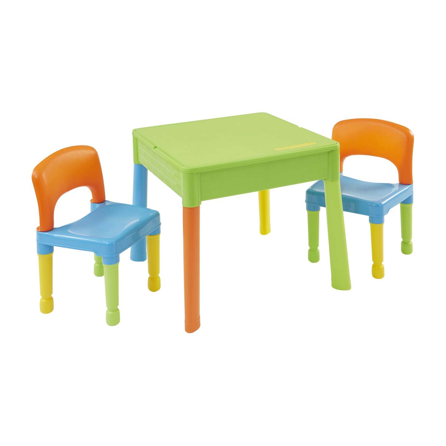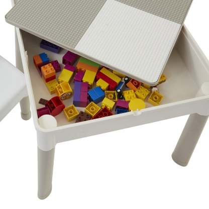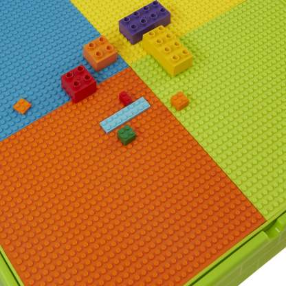 Our square activity table set has a reversible tabletop, one side is smooth, which is excellent for your child to eat, play, write, and do homework. Flip the tabletop over to reveal a construction tabletop ideal for little ones who love to build and create. All our construction tabletops are compatible with the leading brick brands so your child can get the most out of this square activity table.