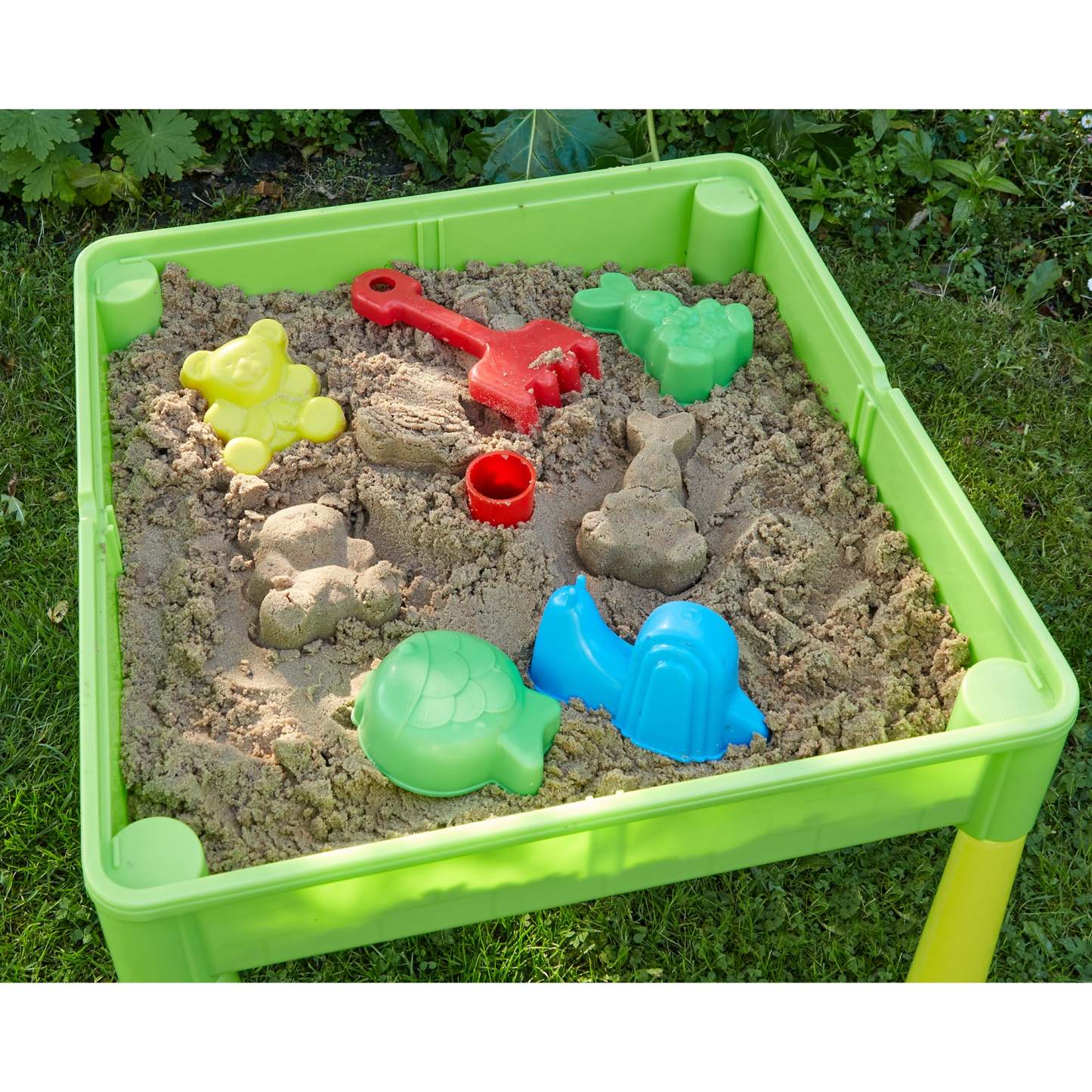 The deep table base is designed to be suitable for sand and water play. Also comes with a handy plug so draining and cleaning the table is a breeze. When children are not playing with sand or water, the base is brilliant for additional storage.